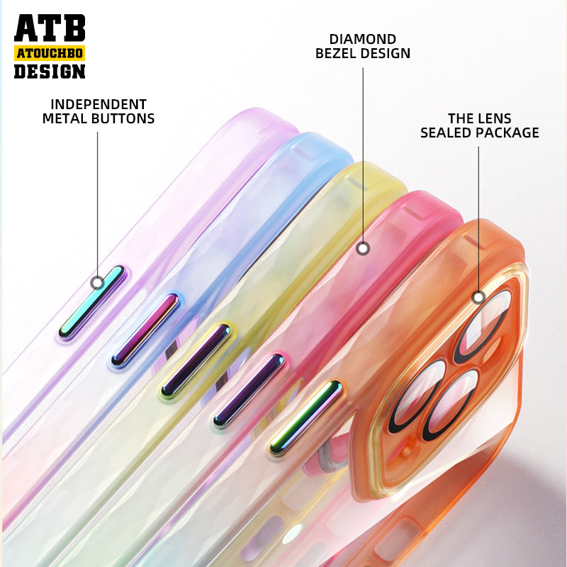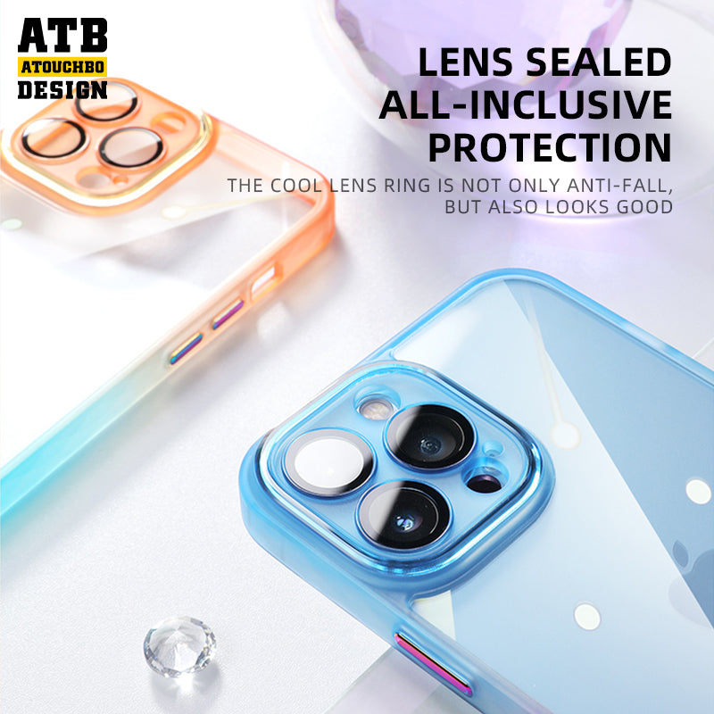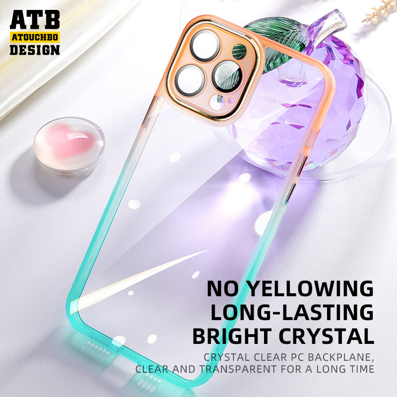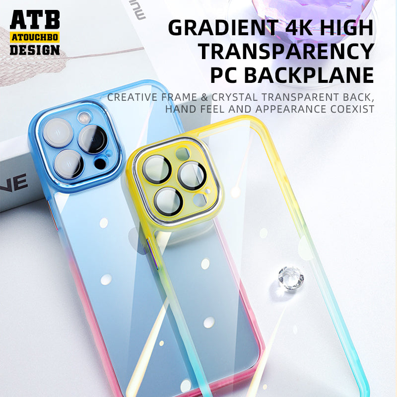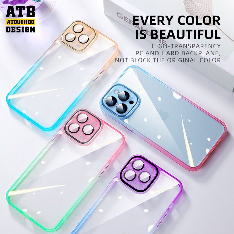 2023 Best Quality gradient color clear transparent clear phone case with camera cover for iphone 13 14 pro max