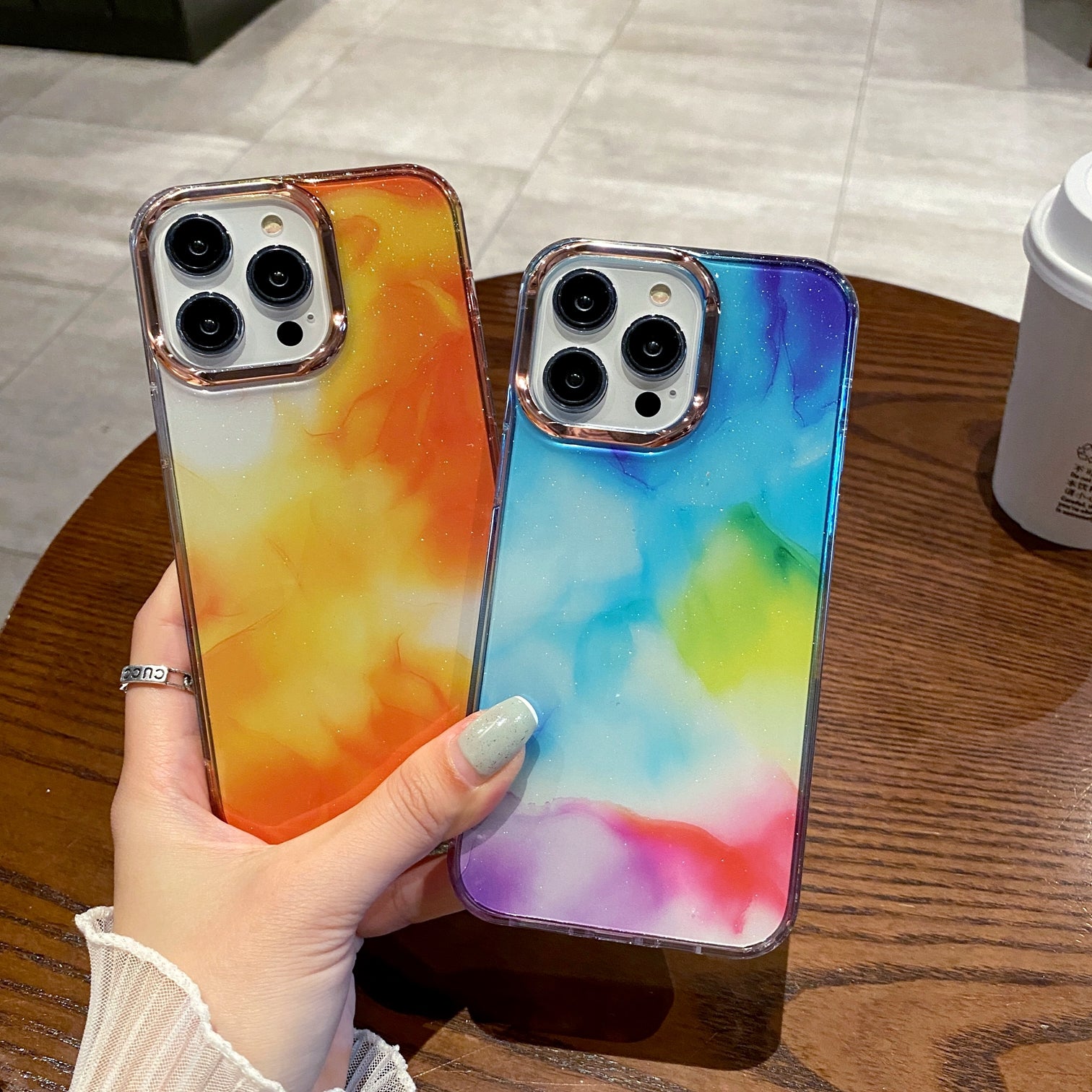 2023 Fashion IMD Electroplated Photo Frame Watercolor Glitter Tpu Phone Case For Iphone 14 Case Mobile Phone