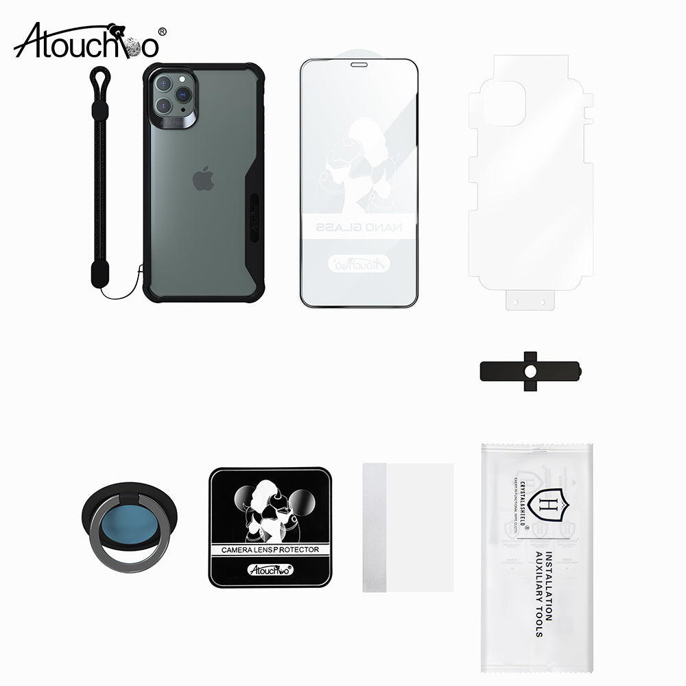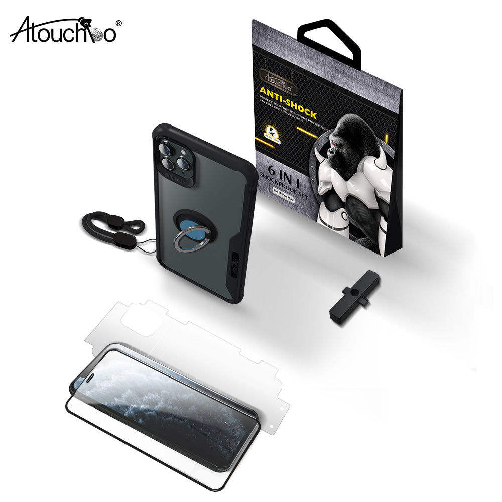 6 in 1 Phone Protection Set for iPhone 12 11 Pro XS Max X Shockproof Case With Screen Protector Kickstand Back Film Lens Film