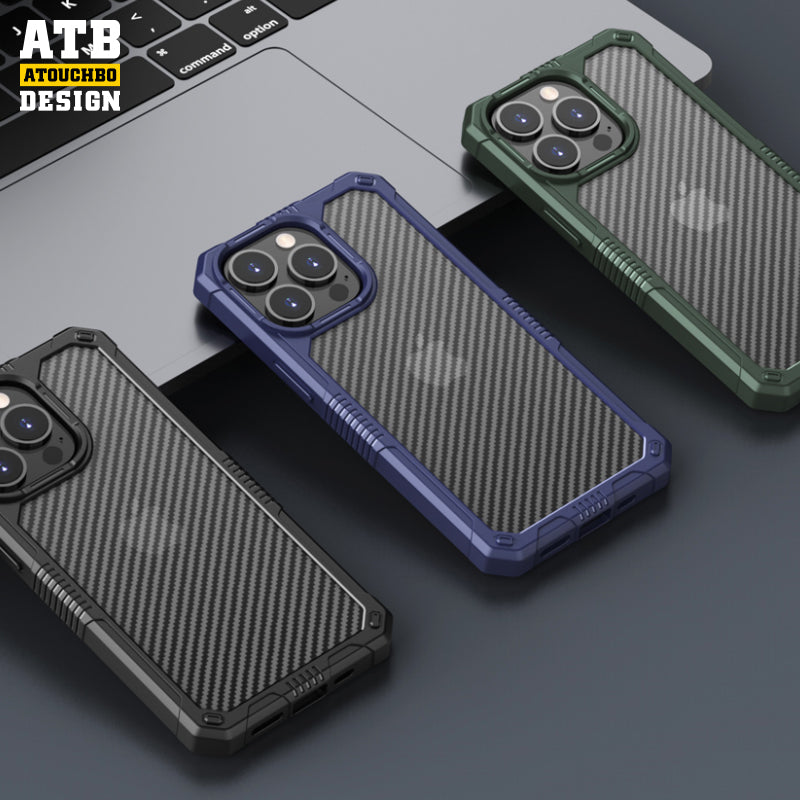 ATB Design Warrior series semi-permeable carbon fiber phone case luxury cover for iphone 11 12 13 14