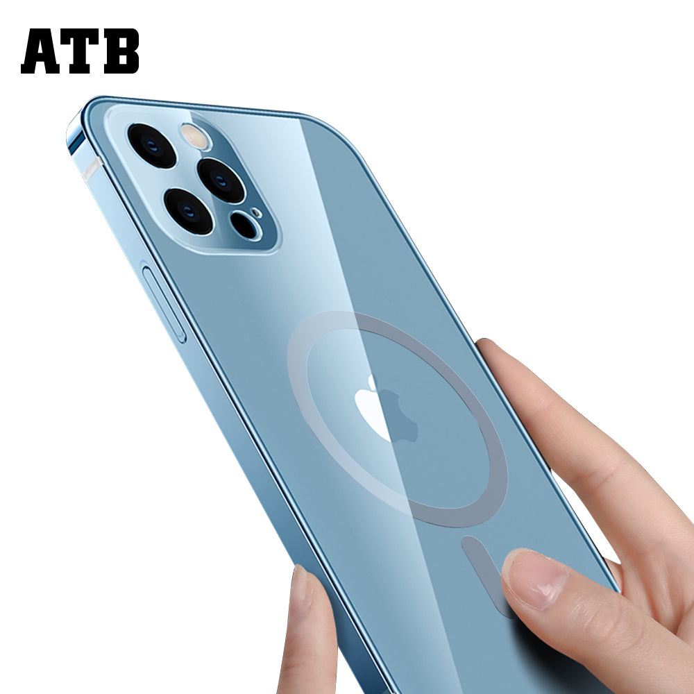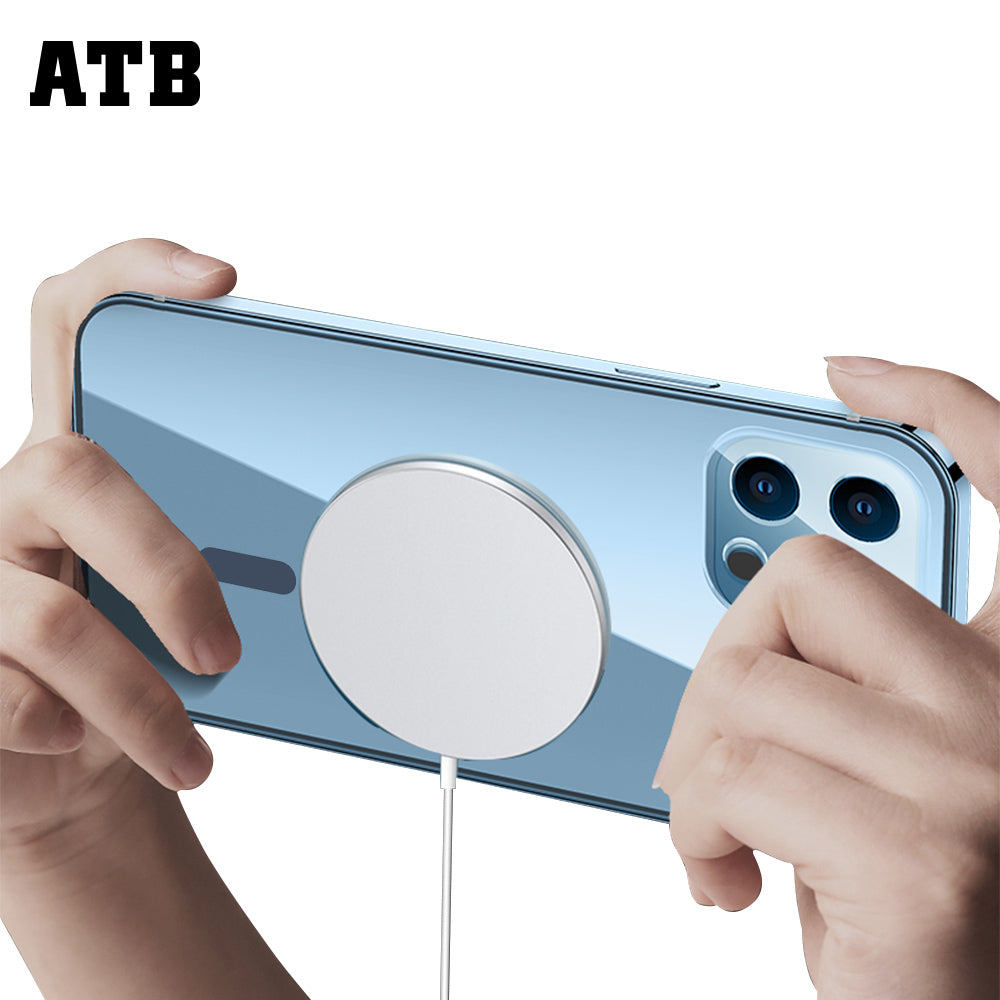 ATB Transparent Magnetic Small Steel Metal Phone Case Shockproof for Phone Wireless Charger for Iphone 13 Pro Max 12 Magsafes