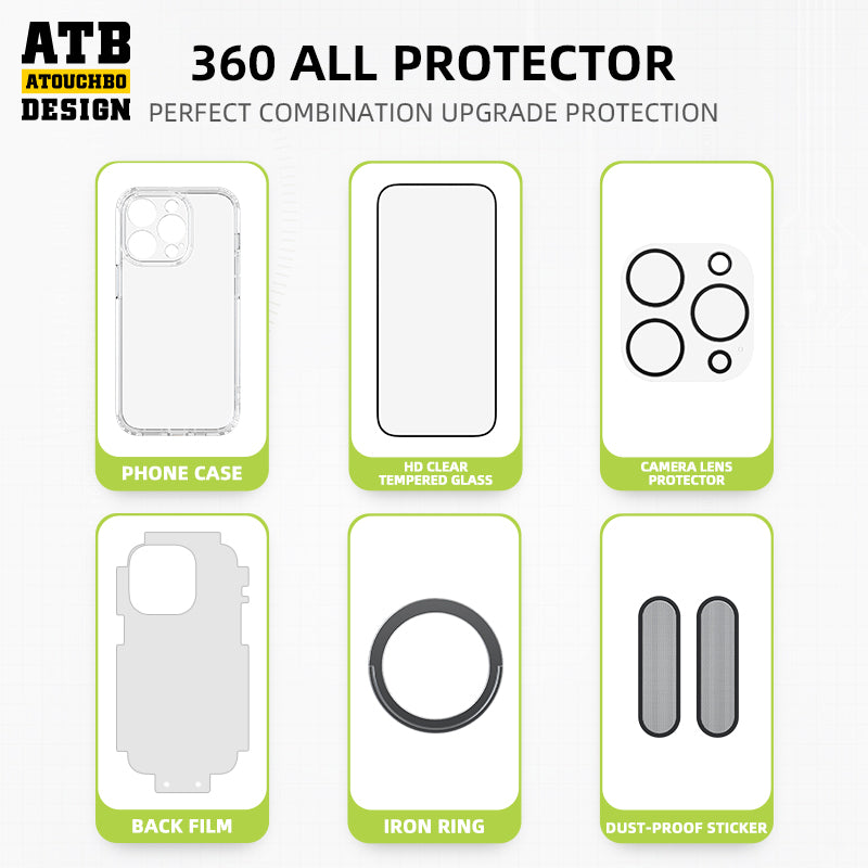 Atouchbo 6 In 1 Full Body Protect Set For Iphone 13 14 Pro Max Phone Case With Screen Protector Lens Protector Anti Shock Suit