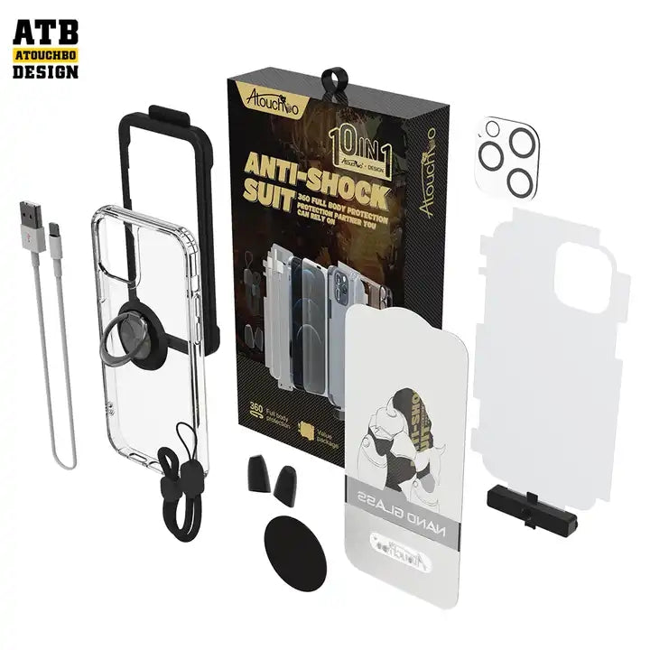 Atouchbo Custom OEM Anti-Shock Screen Protector Clear Glass Style 10 in 1 for iPhone 14 Phone Case Sets