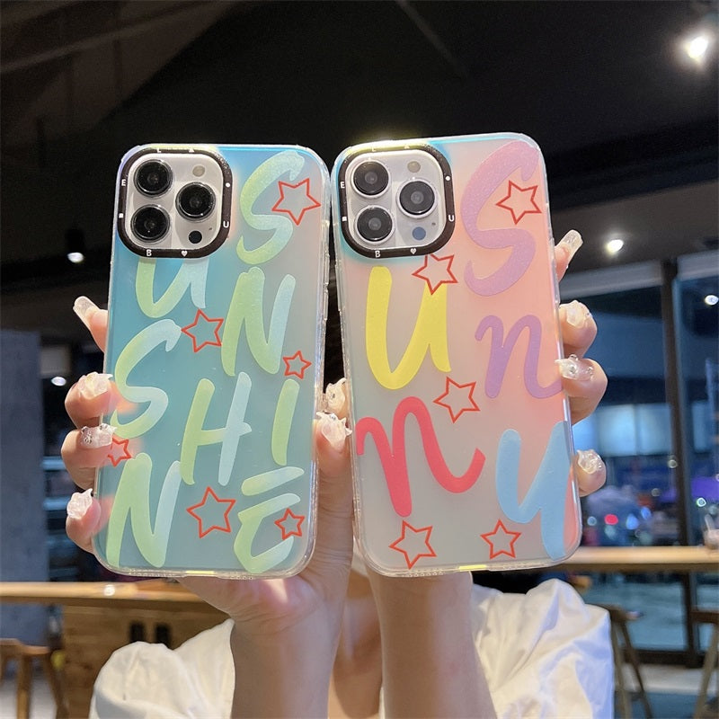 Cell Phone Back Cover With Black Camera Frame Glitter Mobile Bag Colorful Letters Phone Case For Iphone 11 12 13 14 Pro Max