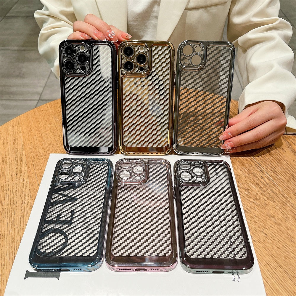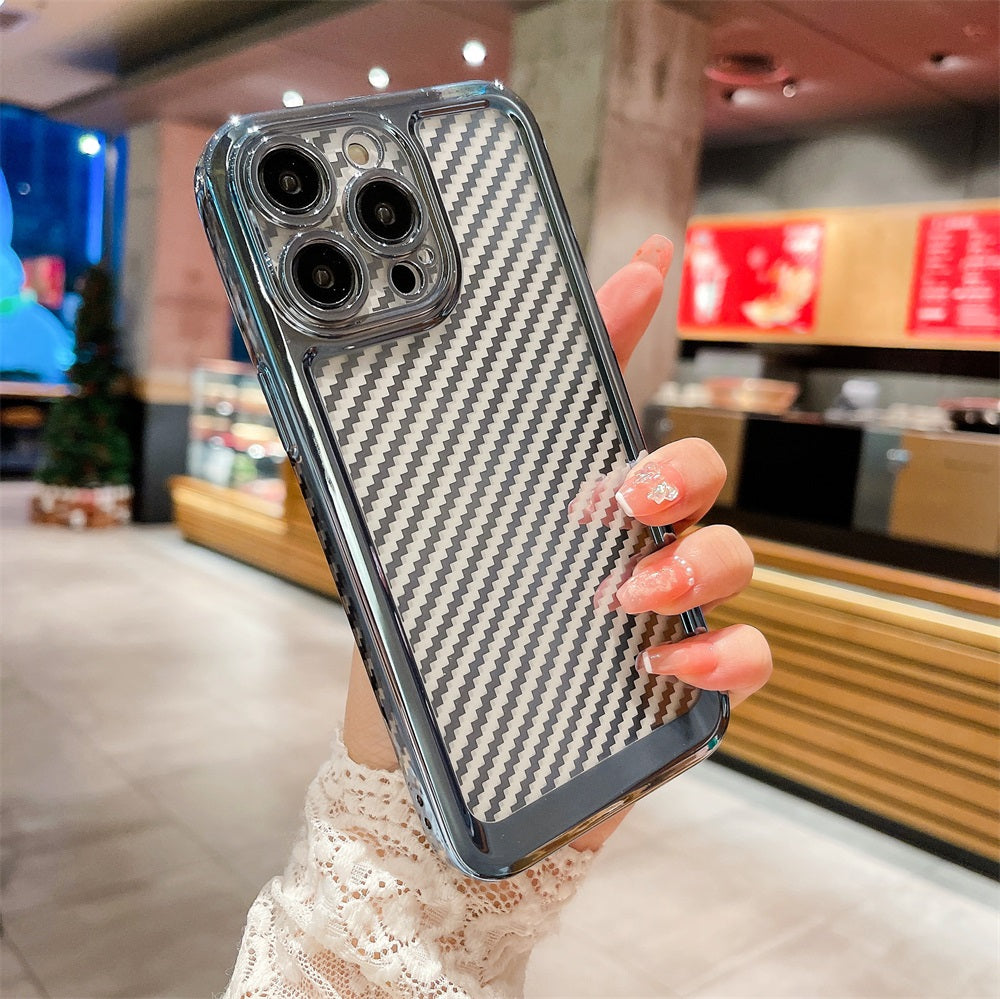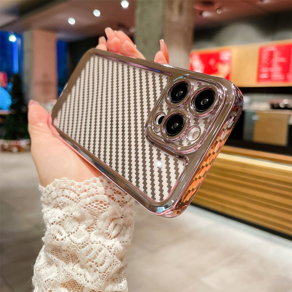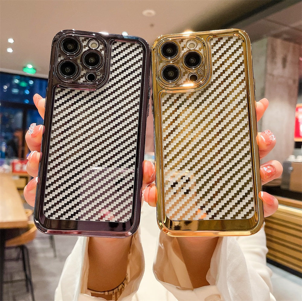 Designer Luxury Carbon fiber Phone Case Fashion Electroplate Soft Tpu Telephone Smartphone Cover For Iphone 12