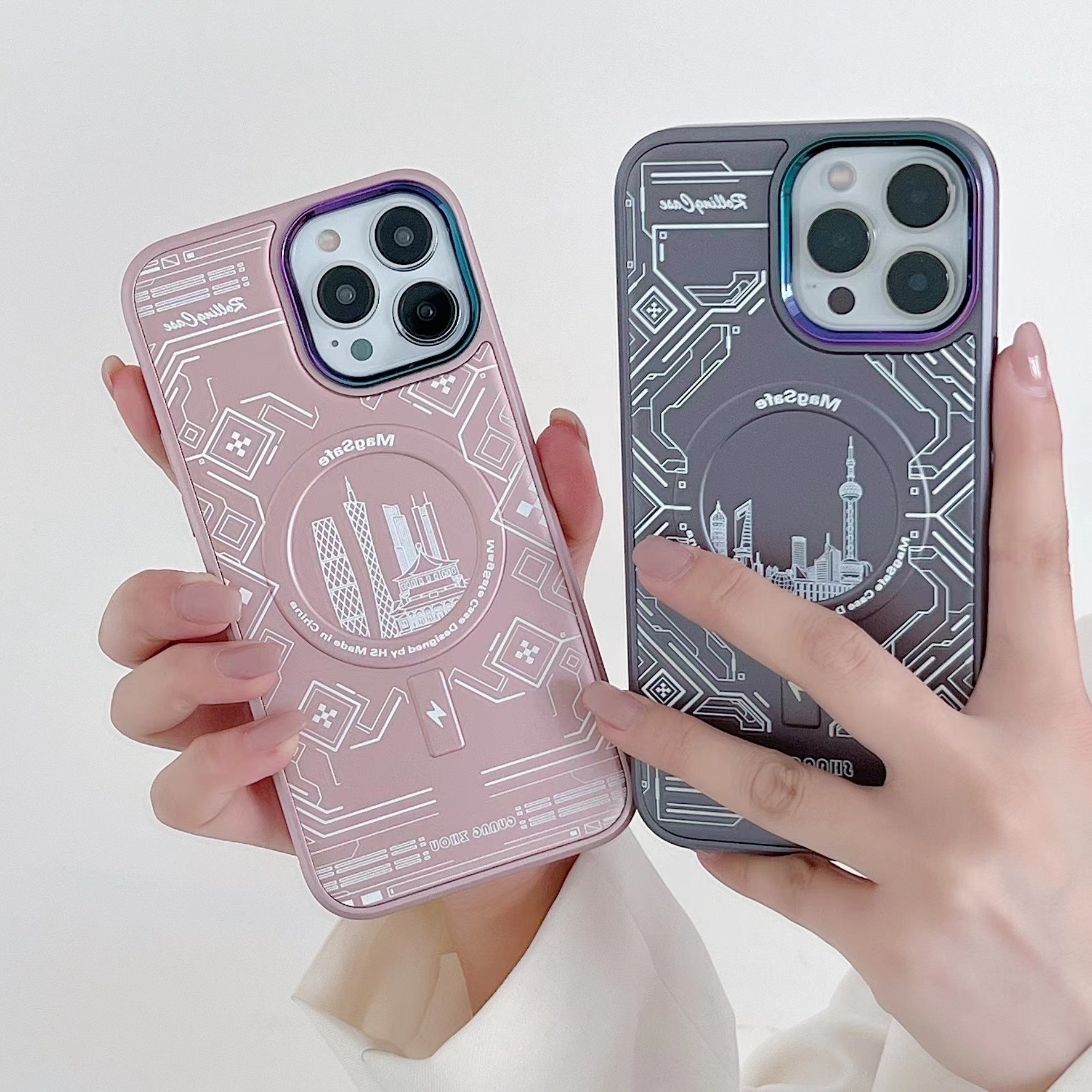 Magsafe 2 in 1 Luxury Shockproof Phone Case for iPhone 14 Pro Max with Magnet Safe Wireless Charging Cell Phone Planting Case