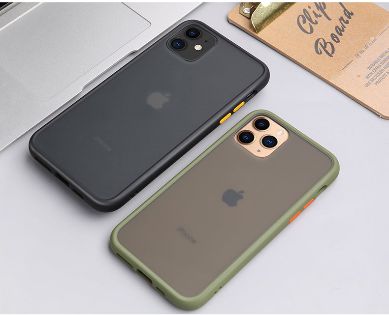 Matte Translucent Phone Case for iPhone X XR 11 Pro XS MAX 7 8 6S 6 Plus Hybrid TPU PC Shockproof Cover Full Protection Case