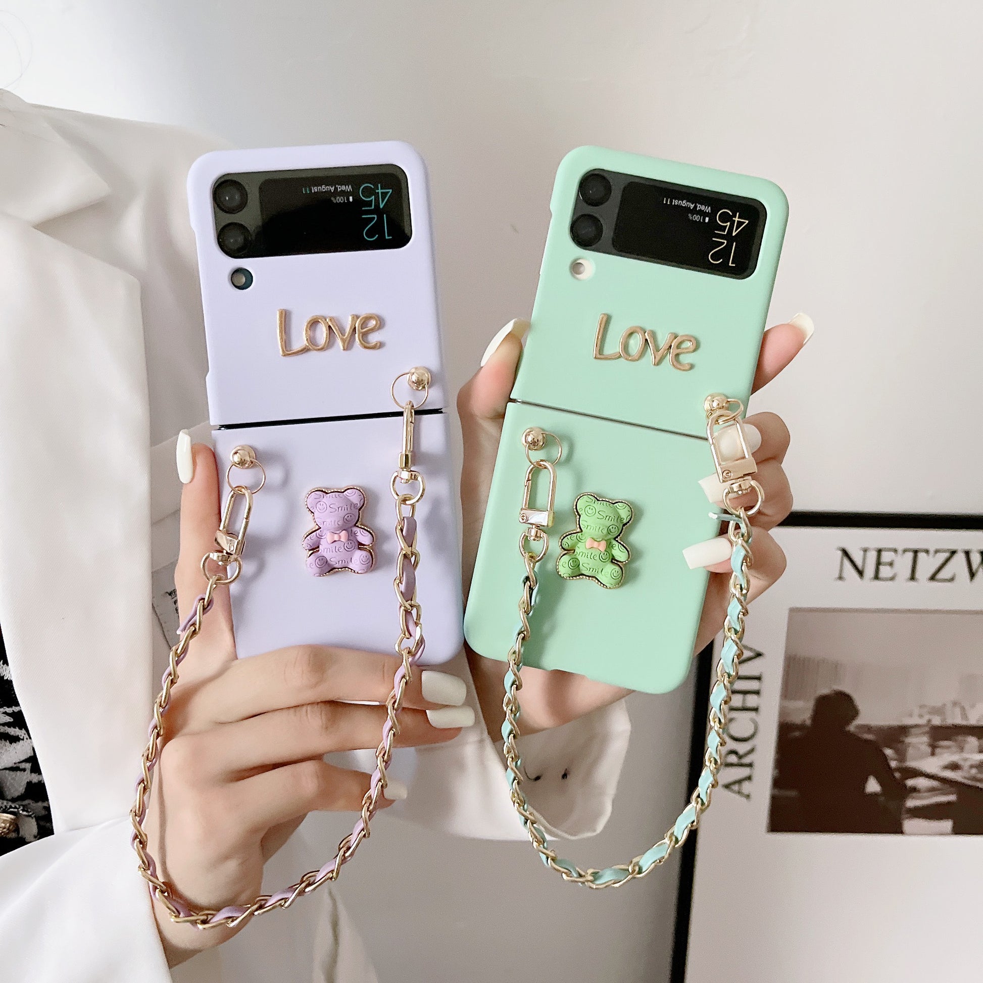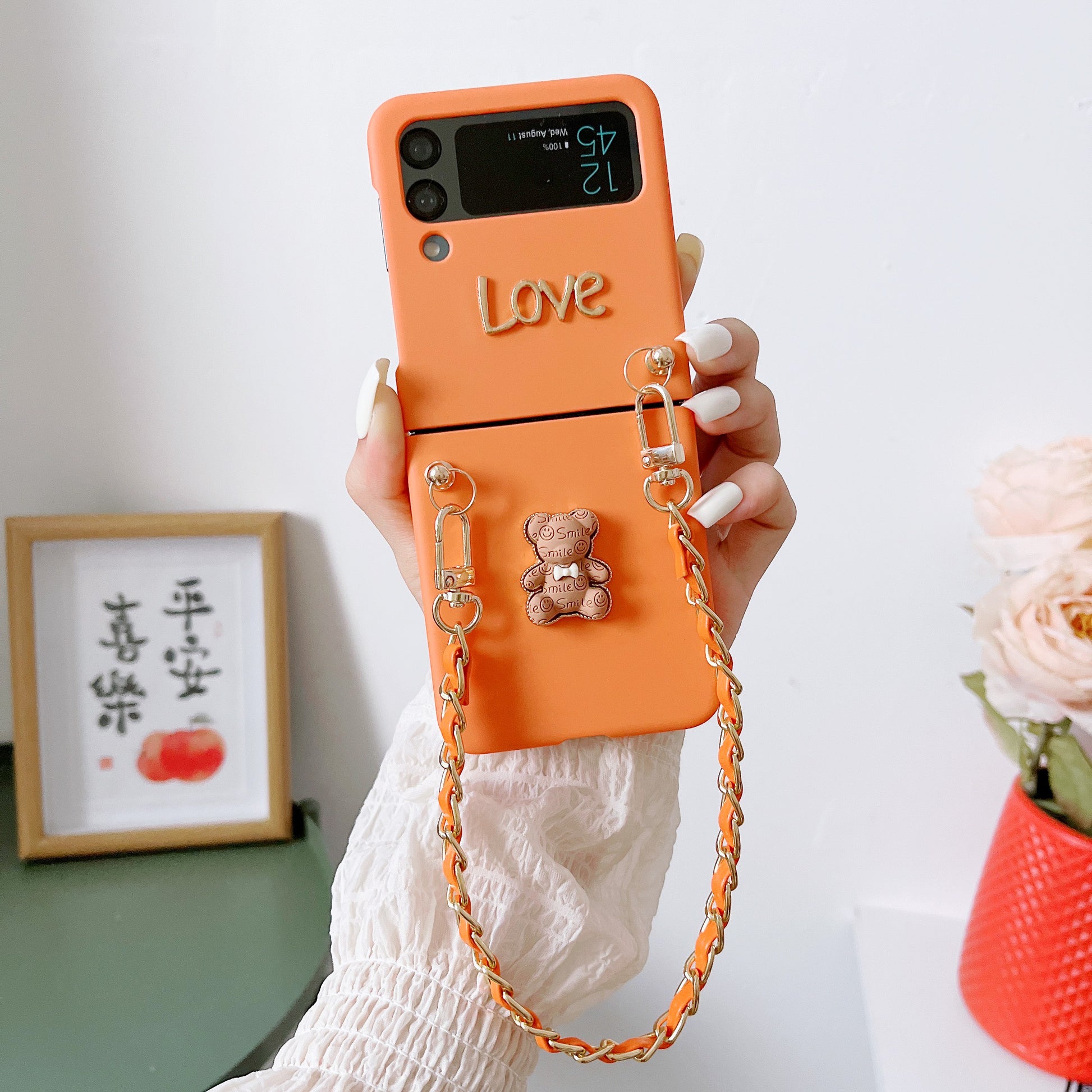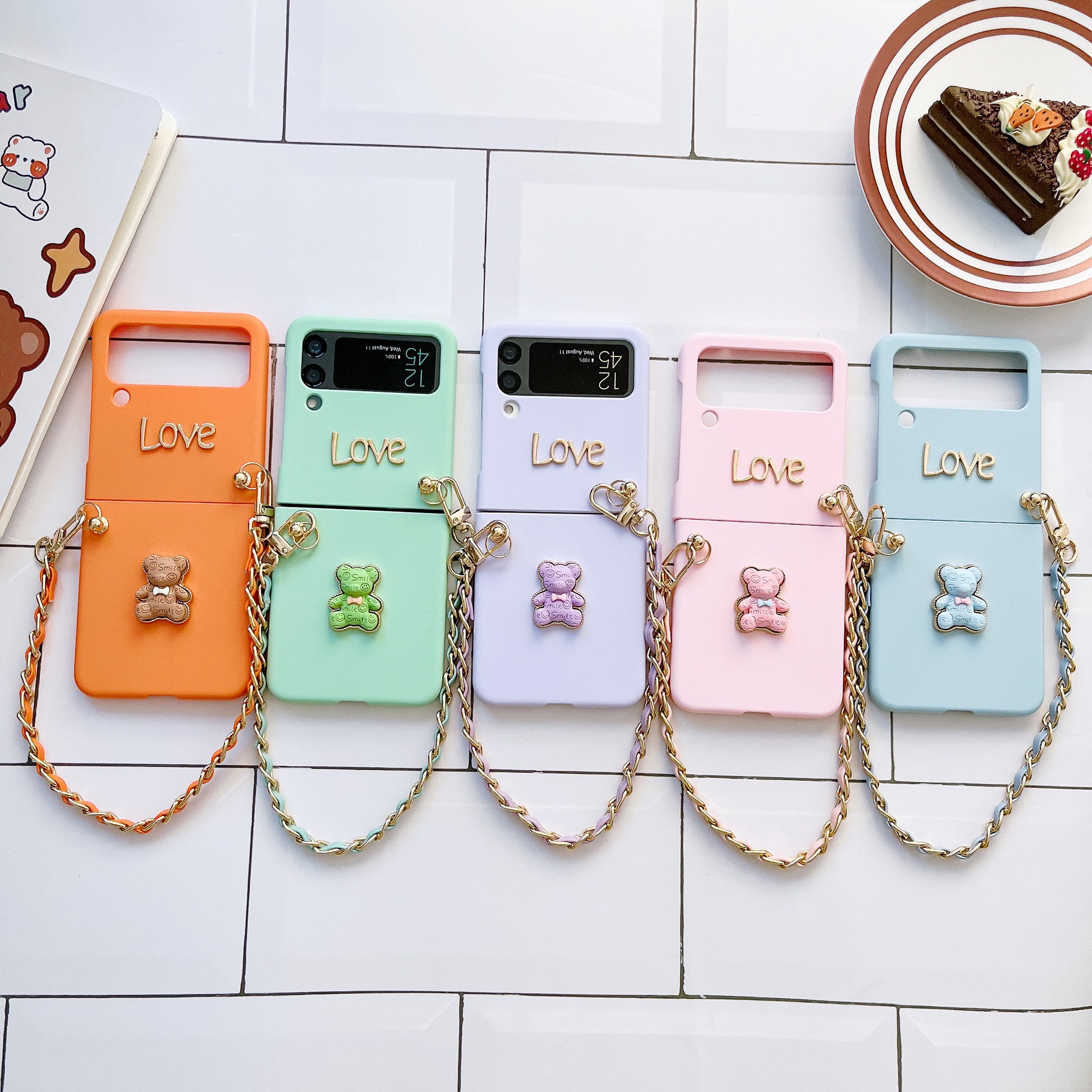 For Samsung Z Flip 1 2 3 4 Pocket Phone Case Treasure Box Cartoon Hand Rope Bear Folding Screen Phone Case