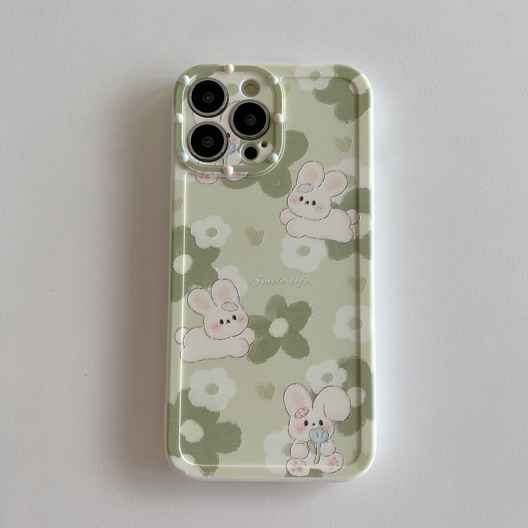 wholesale 2023 Luxury polka dot lens green flower rabbit mobile cover for iphone x 11 12 13 phone case